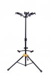 The HERCULES Triple Guitar Stand GS432B PLUS accommodates three instruments and features the foldable Auto Grip System (AGS) yokes, Instant Height Adjustment Clutch, Specially Formulated Foam (SFF) rubber contacts and the adjustable back rests.